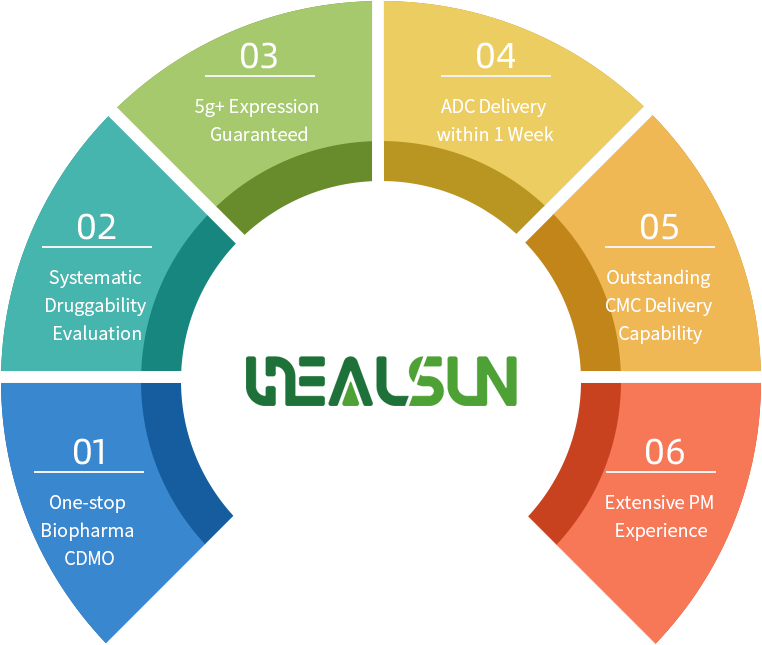 Healsun Biopharm started its journey by providing stable cell line development services and has gradually expanded its scope of services to one-stop R&D and production solution for antibodies, fusion proteins, and ADC products from protein engineering, early druggability evaluation, CMC process development to commercial production.