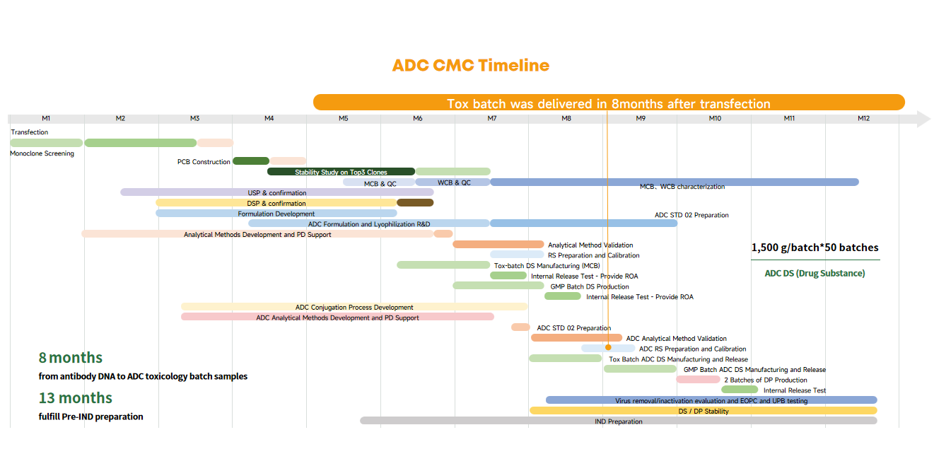 They can deliver from antibody DNA to ADC toxicology batch samples 8 months and fulfill Pre-IND preparation within 13 months.