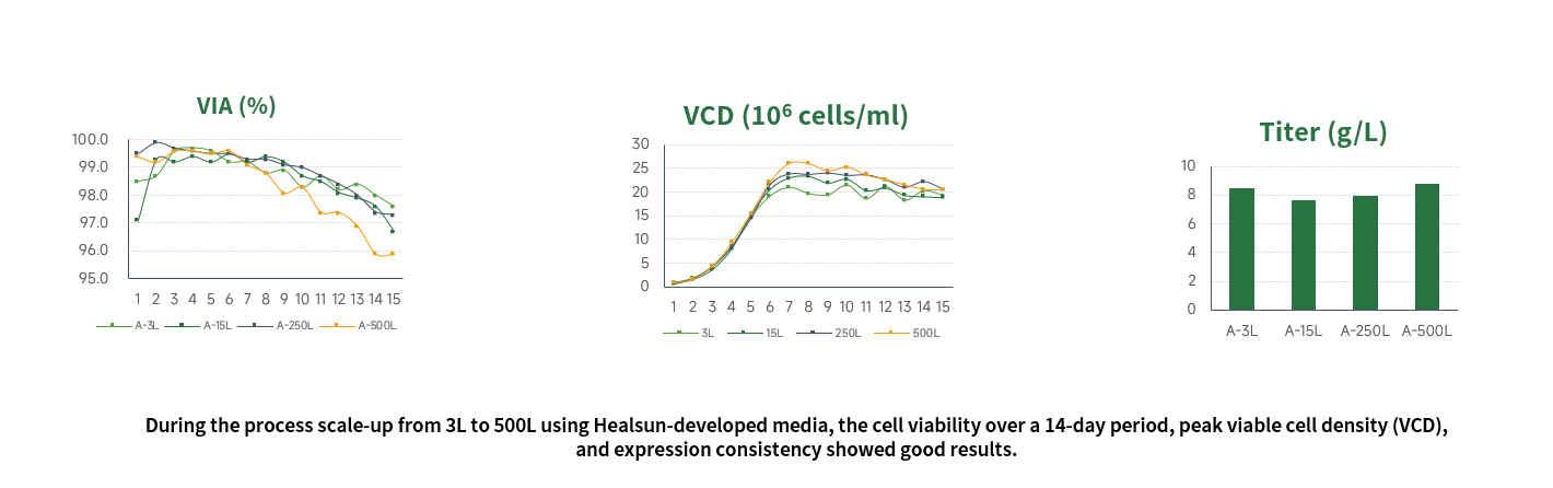 With years of extensive R&D experience of different projects in cell culturing, and relying on self-developed formulation library, HealSun Media Development Team can achieve an excellent formulation quickly thus greatly improving development efficiency.